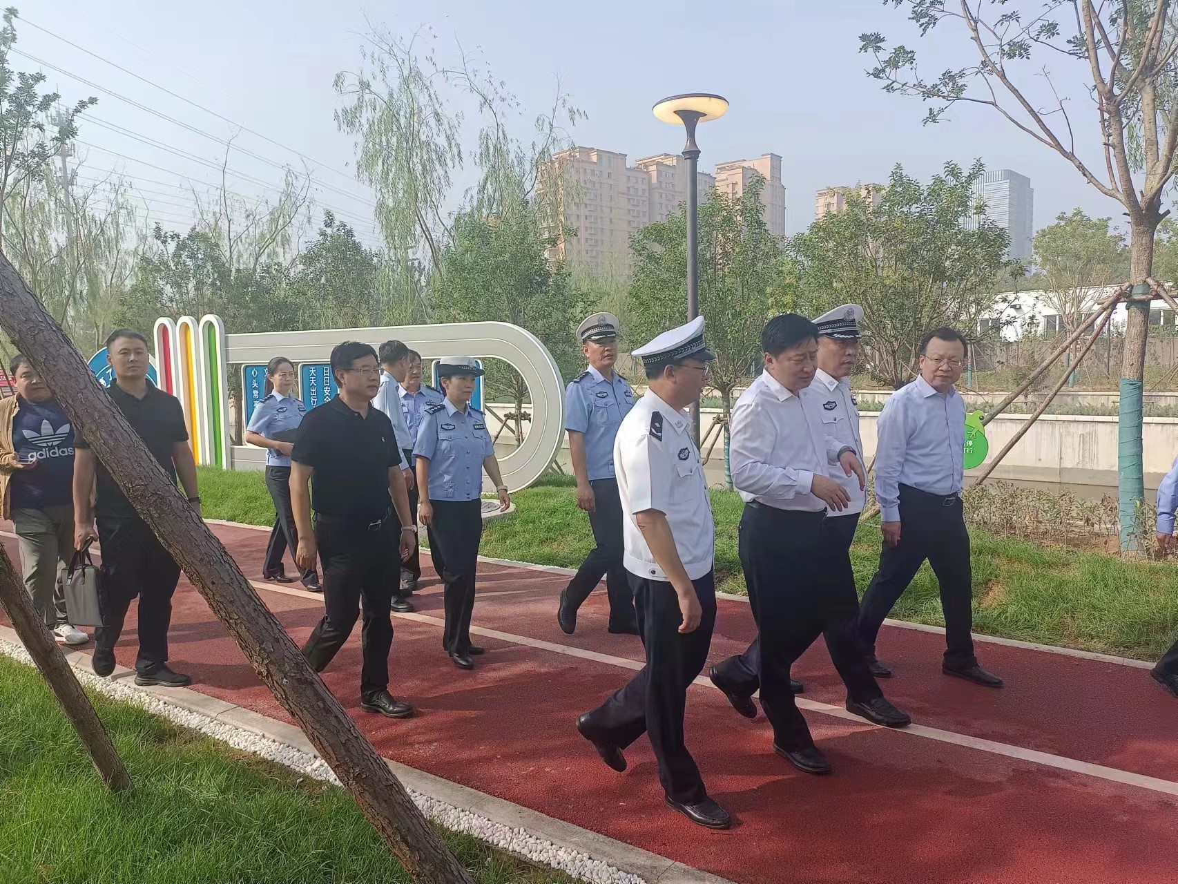 “高新区122交通安全主题公园”位于裕民路与顺河路交叉口。该文化公园场地开阔市民集中,既是市民休闲娱乐活动场所,也是交通安全的宣传之地。该公园严格按照“设计新颖、知识性丰富、案例警示性强、娱乐性同步”的思路,充分利用广场内的绿道和健身器材,以“一步一景一宣传”漫步小道的宣传模式,在绿道起点设立高大醒目的交通主题公园标牌,引导群众进入交通安全宣传漫步小道。